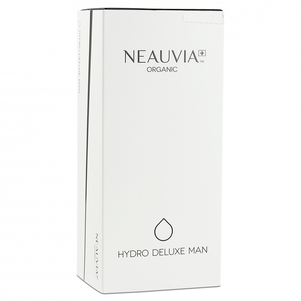 Neauvia Organic Hydro Deluxe Man contains 18 mg/ml of pure hyaluronic acid derived from Bacillus subtilis to offer deep hydration for the man. Such high concentration allows you to obtain very good results noticeable from the first treatment. In addition, Neauvia Organic Hydro Deluxe is enriched with 0,01% of calcium hydroxyapatite and two amino acids. In addition to hyaluronic acid it contains amino acids – Glycine and L-Proline – that are main ingredients of collagen. This unique composition activates and supports natural processes of collagen production, thanks to which skin becomes thicker and firmer.
